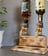The bases are hand-turned solid Siberian pine, finished with a light oil finish or shellac finish, to give a close-to-the-wood look. These are all made by hand and free form. It is impossible to make the design the same for each and every order. The design is varied to help hide or accentuate various flaws, and characteristics in the wood.
